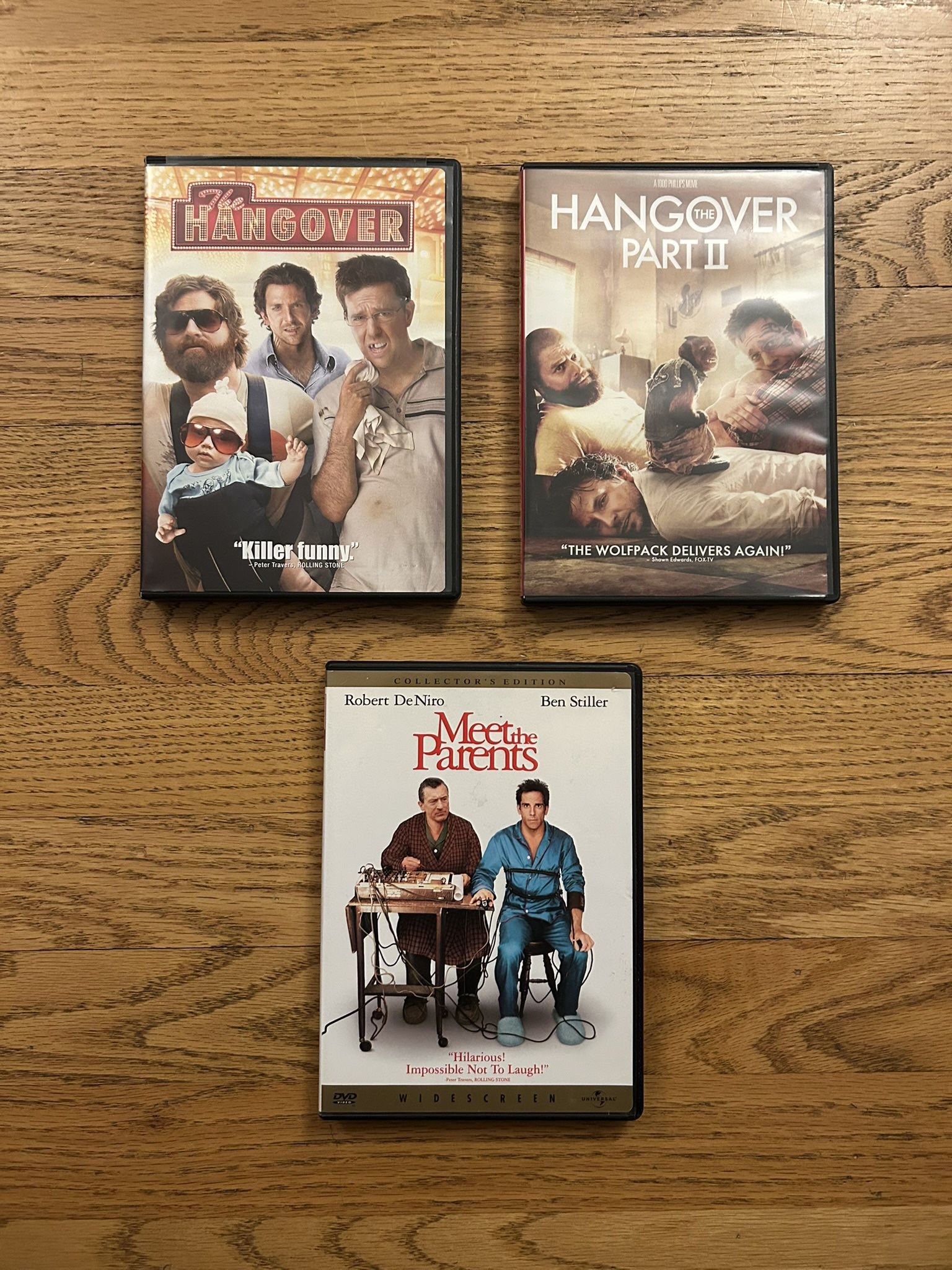 Movie Lot: Hangover, Hangover II & Meet the Parents. Price is for all. From a pet and smoke free home. Cash or Venmo. Pick up in Crystal.