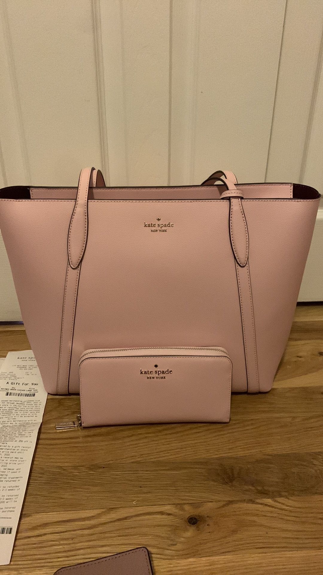 Brand new large cara tote and matching staci saffiano leather wallet in lght crepe. Light pink color. Perfect condition with tags and original packaging. Original over $400 retail