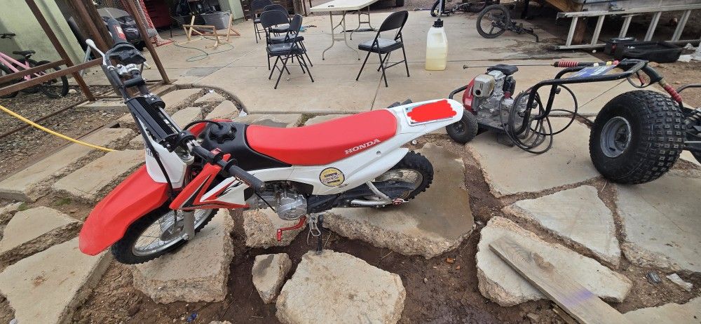 I'm selling my CRF110F, it has a bad battery but other than that it runs good, it has aftermarket handle bars, light bar, brand new shifter and shifter shaft, it comes with a new back tire and tube (not installed), has a fresh oil change.