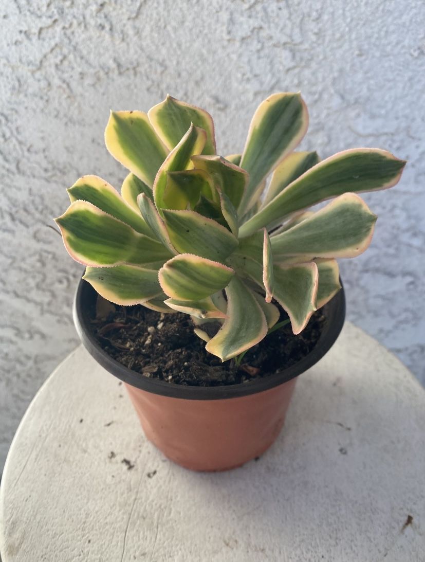 Pick up in Oceanside 6 Inch Pot Succulent Plant - Unique Aeonium Sunburst Variegated - Rooted & Established - Drought Resistant 🪴 We have a lot of plants, succulents, fruit trees and more available in different sizes. Examples: Aloe, Agave, Citronela, elephant fingers and many more. Contact for pick up details. $5 for this 6 inch pot of Aeonium Sunburst Please check out my other listings for other varieties and sizes. Thank you.