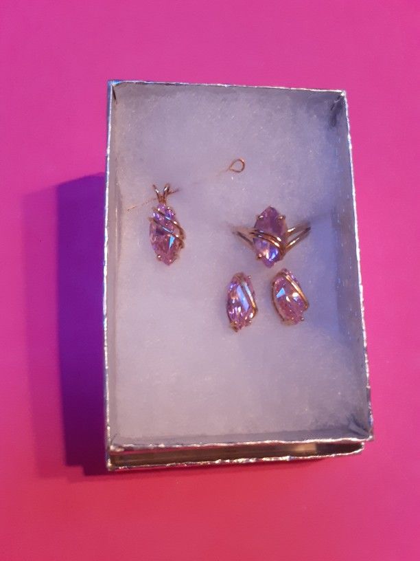 Beautiful Pink Topaz Matching Set all 10k Ring size 6 1/2 Pendent Earrings