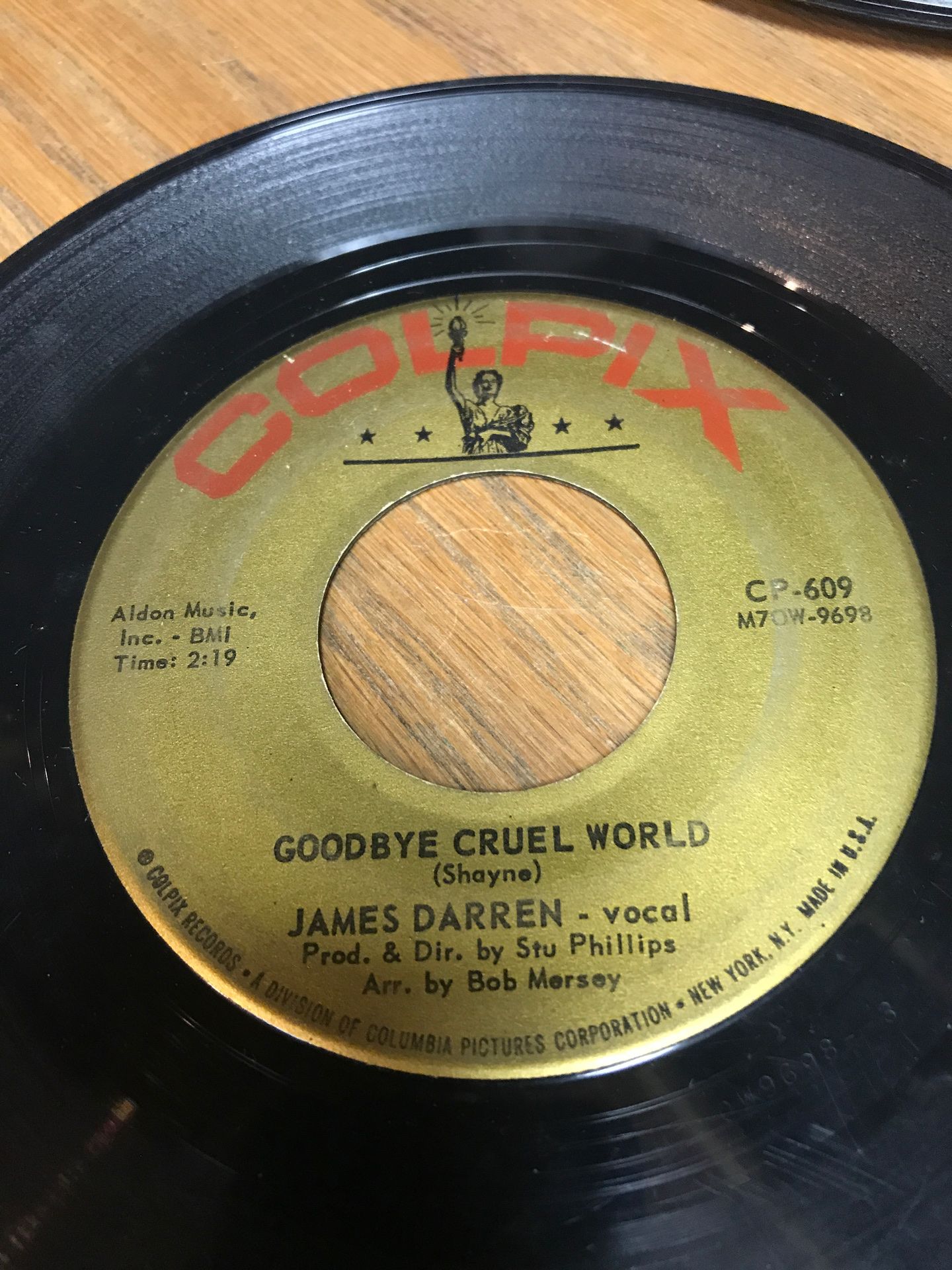 5 Old 45rpm’s ; Goodbye Cruel World (James Darren), Theme From “A Summer Place (Percy Faith), Sinner Man (Trini Lopez) You Keep Me Hangin On (The Van