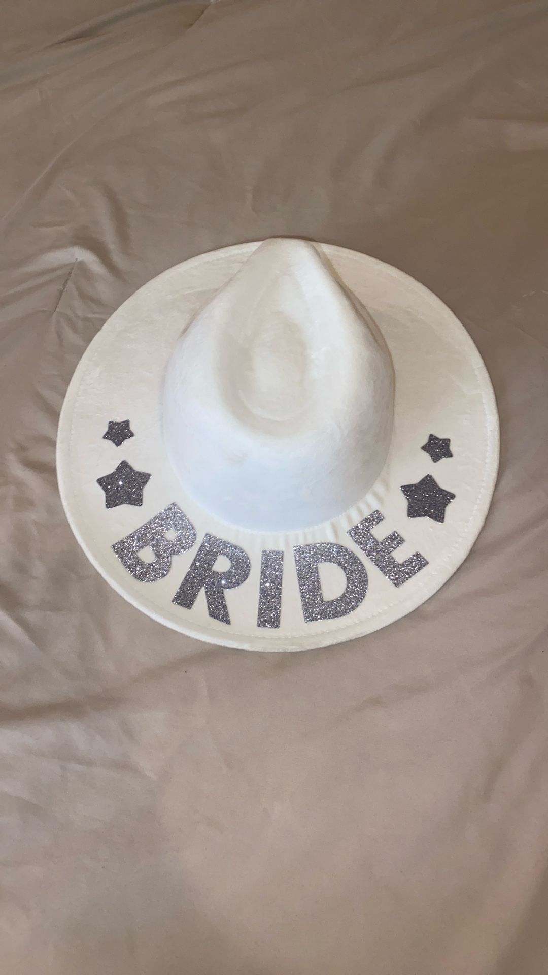 White bride hat with silver glitter print