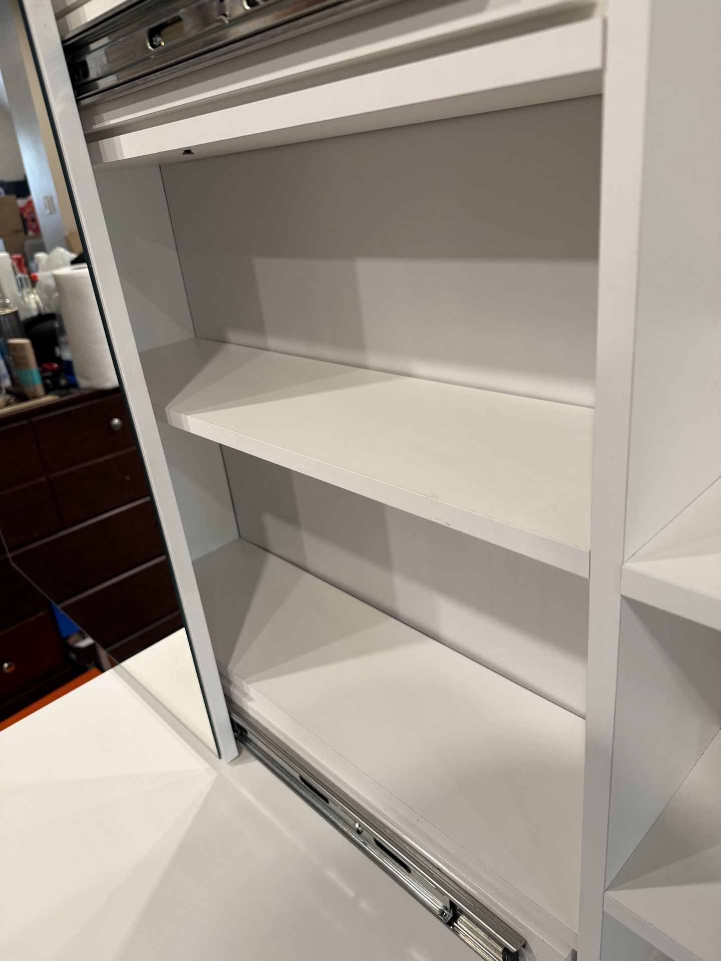 Clean vanity! When I got it I did not glue the drawers hence showing in the photos that they come off. For easy pickup