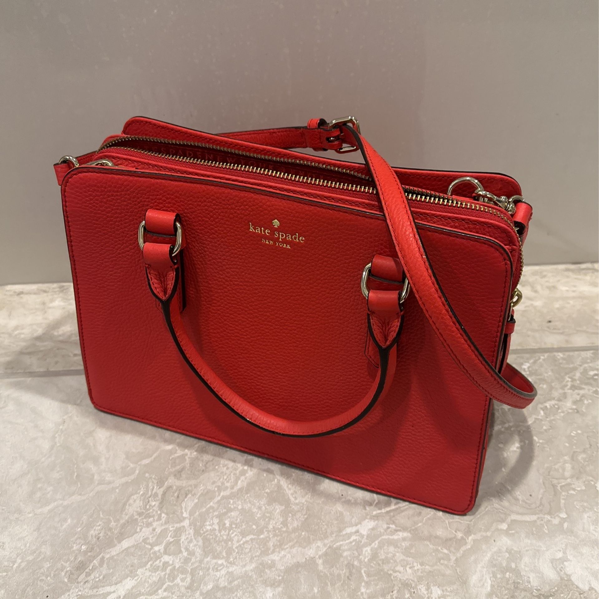Kate Spade Red Leather Satchel Bag with Shoulder Strap