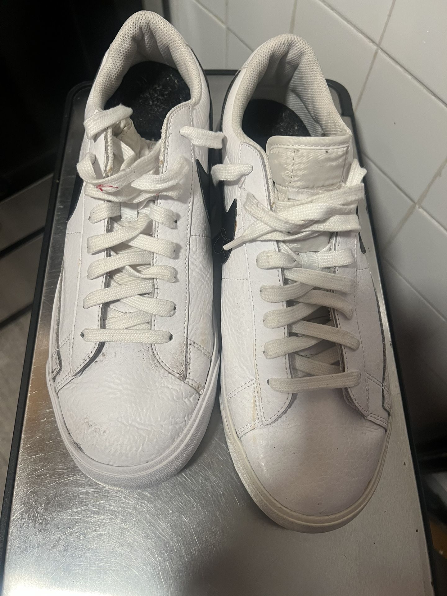 White Nike sneakers are almost new just a little dirty but in excellent condition Size 11 Tenis blancos nike están casi nuevos solo un poco sucio pero en excelentes condiciones Talla 11