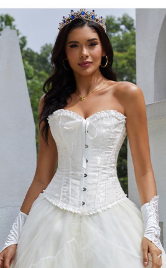 SMALL WHITE Bustier Corset Top for Women | Overbust Lace Up Waist Cincher Shapewear Lingerie