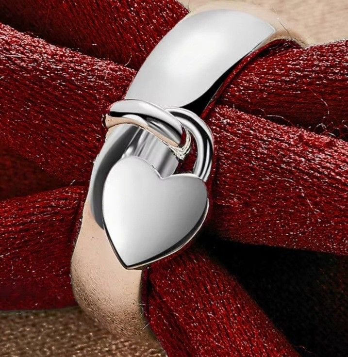 New 925 Plated Silver Heart Dangle Charm Ring Size 7 SHIPPING AVAILABLE
