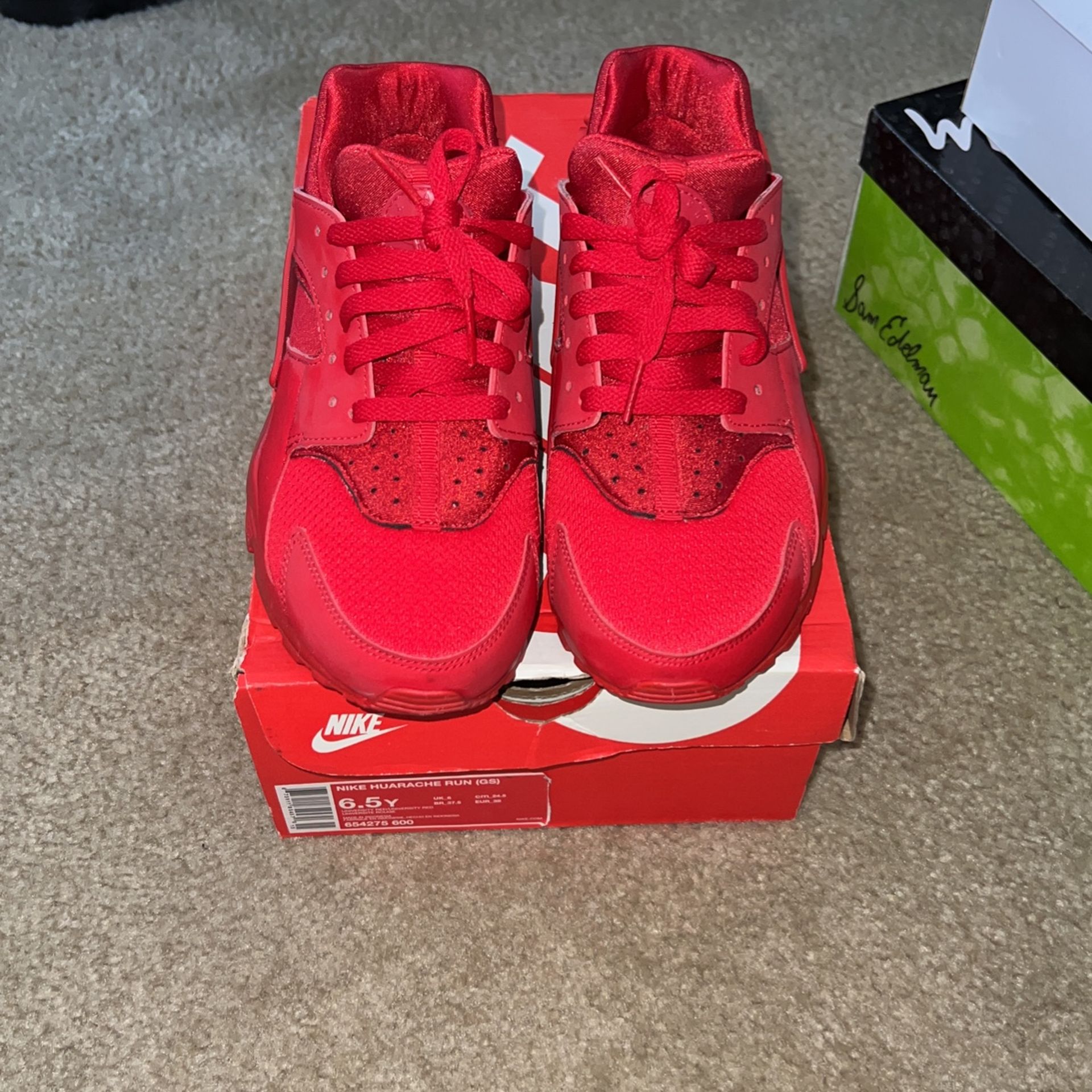 All red Nike huarache run GS. Size 6.5 youth. Only worn twice. Condition is 10/10. $110 OBO. If local willing to meet in public place