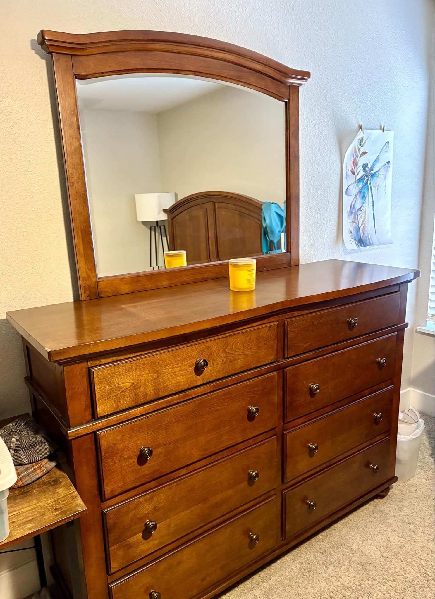 Hardly used Two of the leg stands were loosened during the move and simply need to be tightened back up under the dresser.