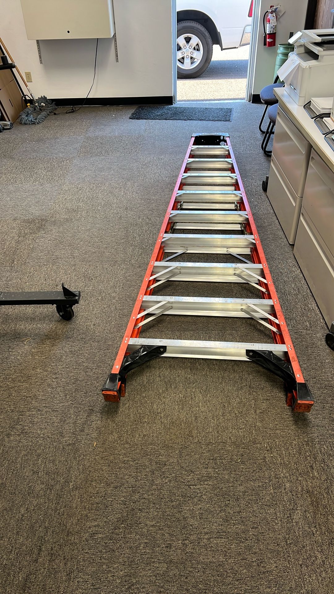Almost new kept in storage 10 foot fiberglass ladder.