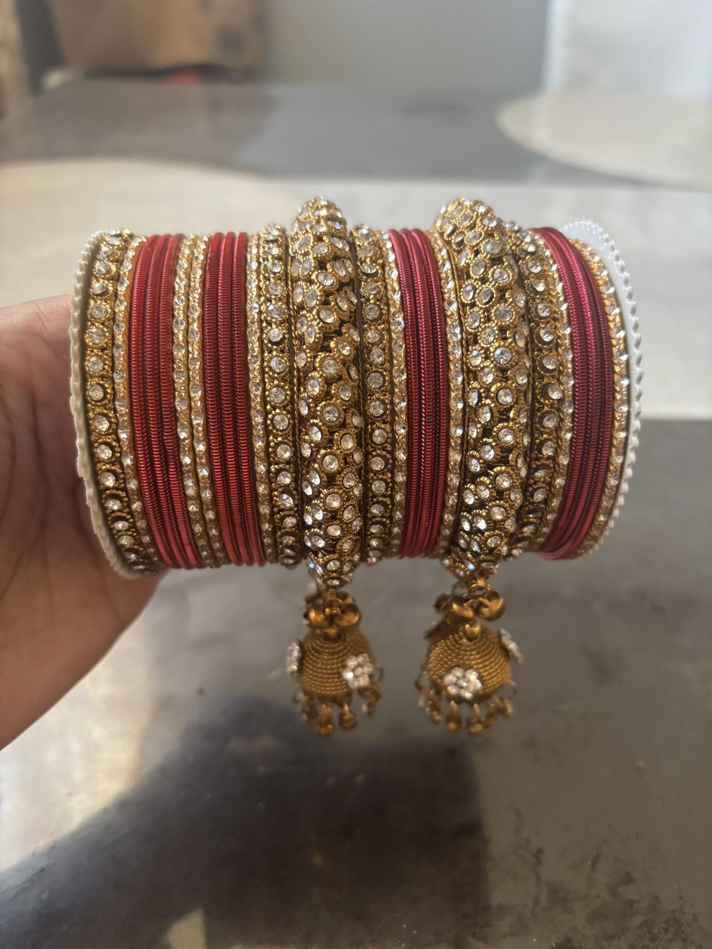 Red and golden colors with sizes 2.10 party wear bangle set