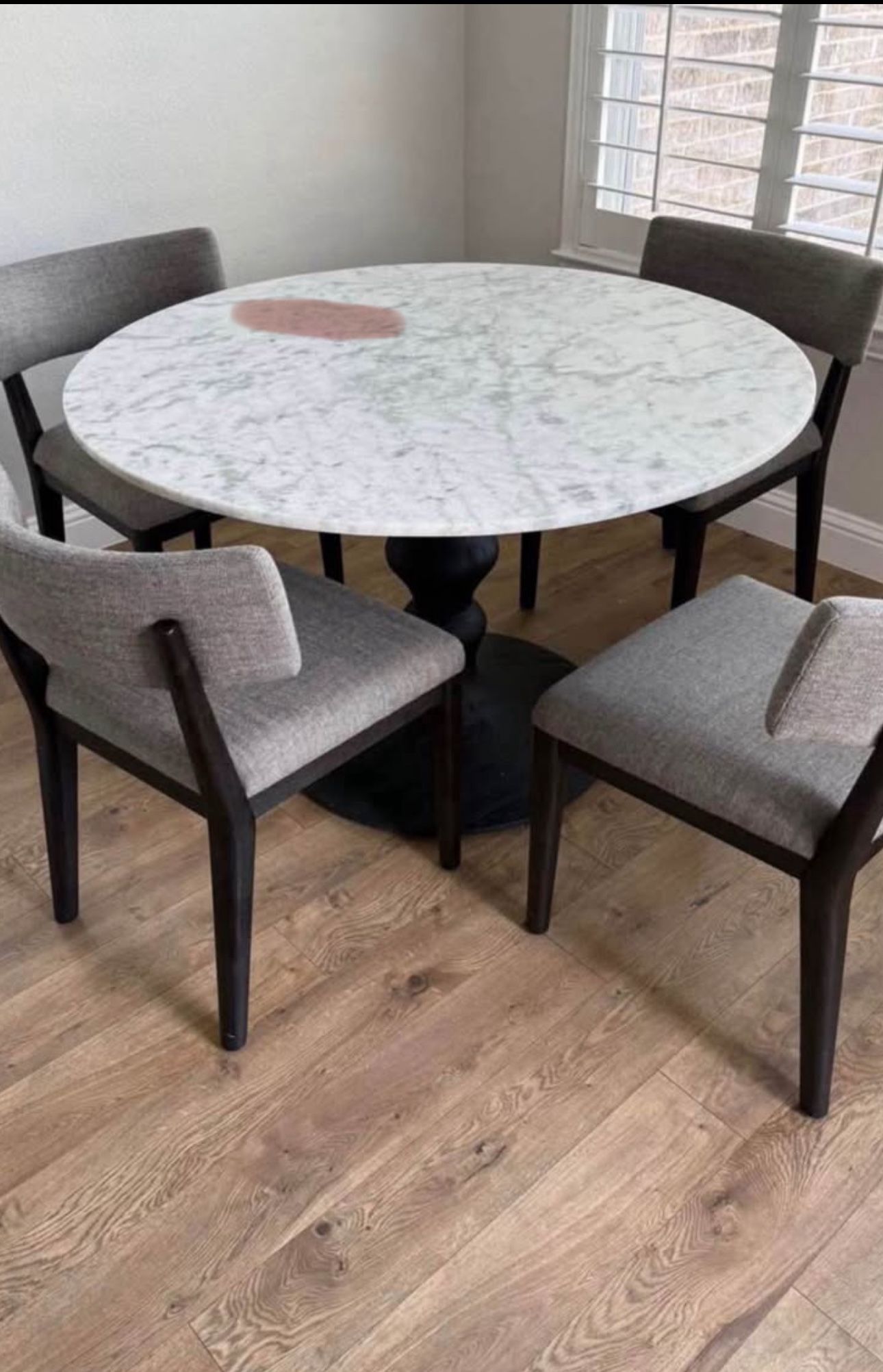 Beautiful Brand New Designer 60” Marble Round Table & Chairs By Four Hands. Get this stunning set while it lasts Retail price $3,800