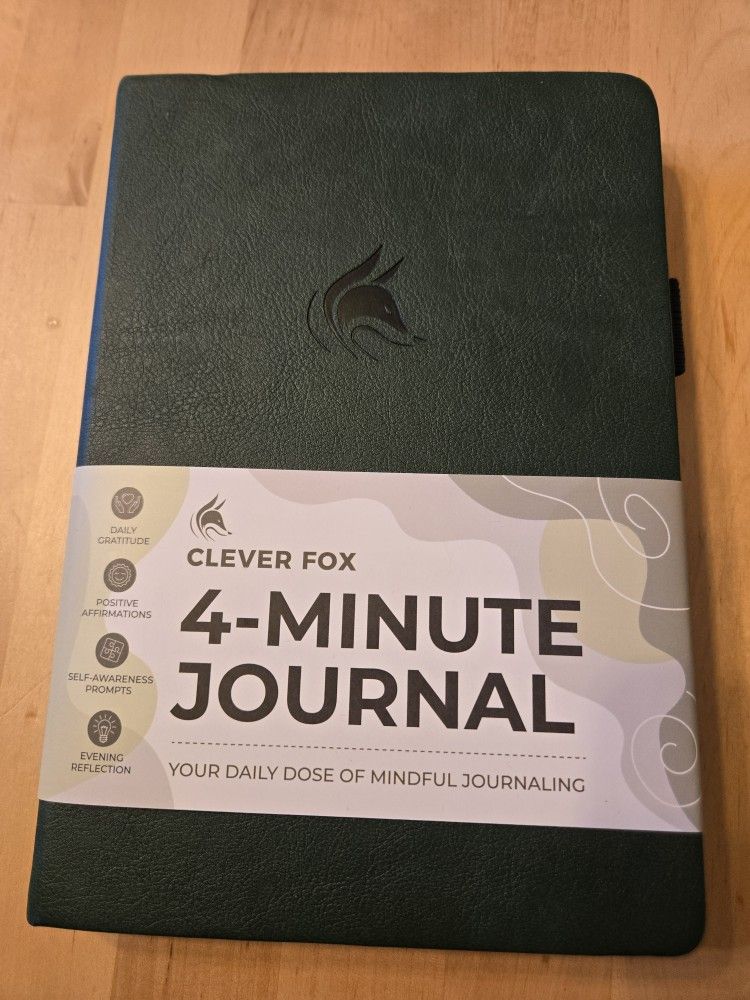 Clever Fox Four-Minute Journal – Daily Positivity Journal with Prompts – Motivational Affirmation, Mental Health & Habit Tracker (Forest Green). Great gift for someone wanting to practice mindfulness, gratitude, and motivation. Never used, like new. I may be able to deliver depending on location (Seattle or a little south preferred).