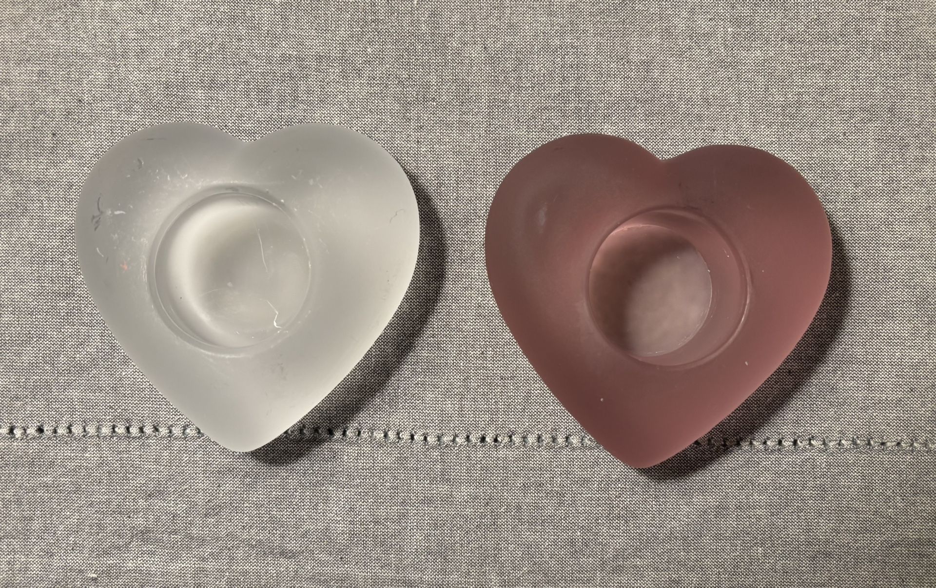 Pair Of Glass Heart Shaped Votive Candle Holders