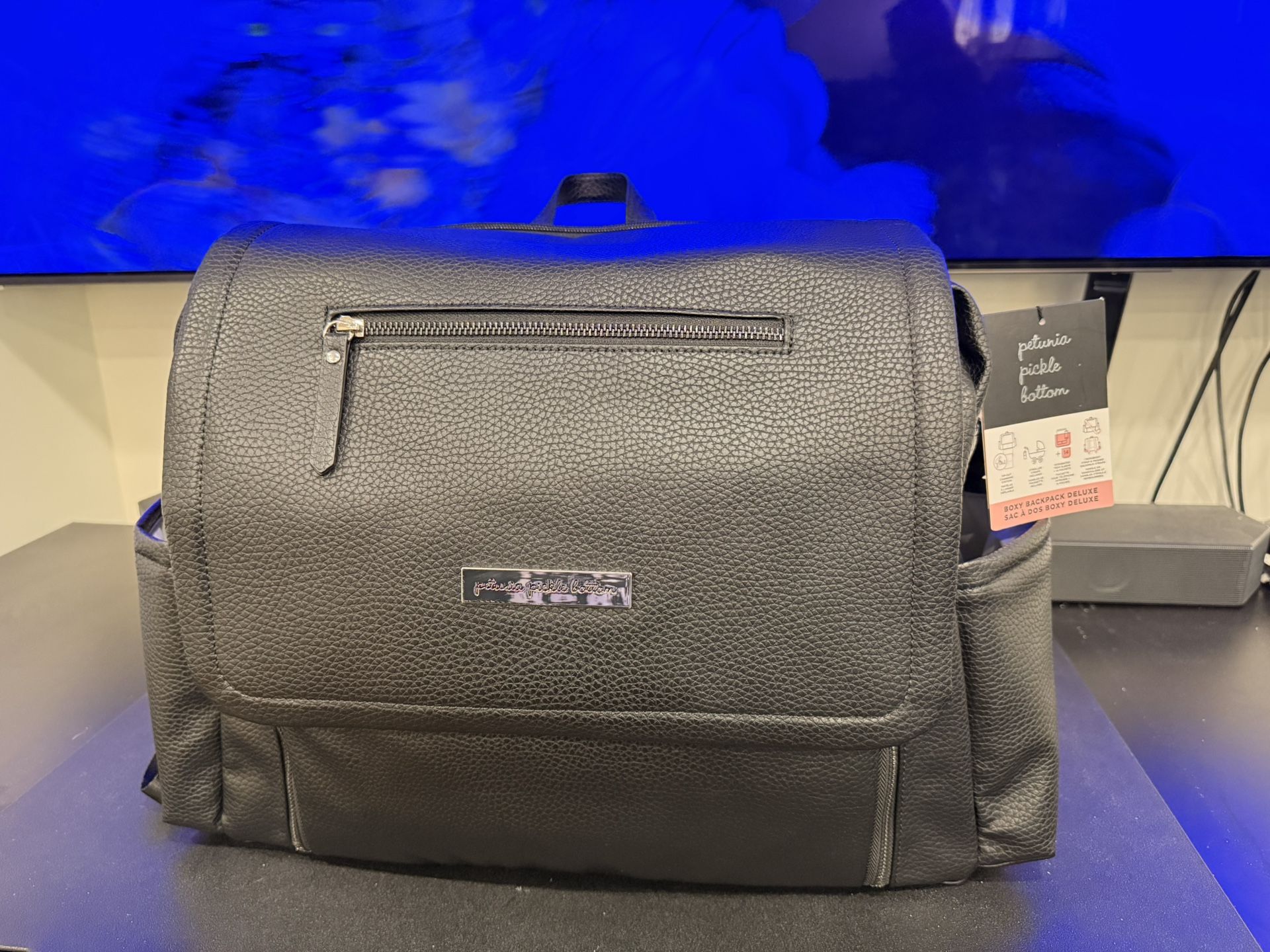 Was gifted to us but accidentally forgot about in storage. So don't need. It's New with Tag still attached. DM me if you have any questions! Website Description: THE ULTIMATE DIAPER BAG – Boxy Backpack was created with the modern mom in mind. It comes complete with intuitive features including a built-in changing station, magnetic closure, stroller straps, and two carrying options. Perfect for every outing! FASHIONABLE & FUNCTIONAL – Don’t compromise on style or practicality. Our backpack’s efficient design has an extra roomy interior and a zip-out changing area. Its chic look will make people think you’re toting a designer bag instead of a diaper bag! CONVENIENCE IS KEY – Our backpack has 5 interior pockets and 2 exterior pockets for bottles. The useful baby changing station has a removable pad and pockets for diapers and wipes. Plus, the magnetic front flap closure and extra snaps add security. EASY TO CLEAN AND CARRY – Boxy Backpack has a top grab handle and stroller straps for to baby carriages. Wear it as a backpack or as a cross-body bag. Made with cleanable fabric and water-resistant linings to protect against those every day spills. PETUNIA PICKLE BOTTOM – Diaper backpacks and shoulder bags plus versatile accessories that keep essentials organized and ready such as packing pouches, cosmetic cases, pacifier holders, bottle holders, and stroller clips all are well crafted and ready for any outing from baby and beyond.