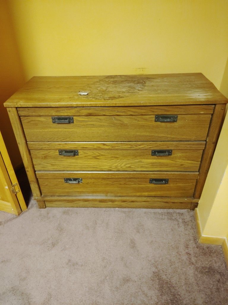Has damage to top and will need to be refinished.
