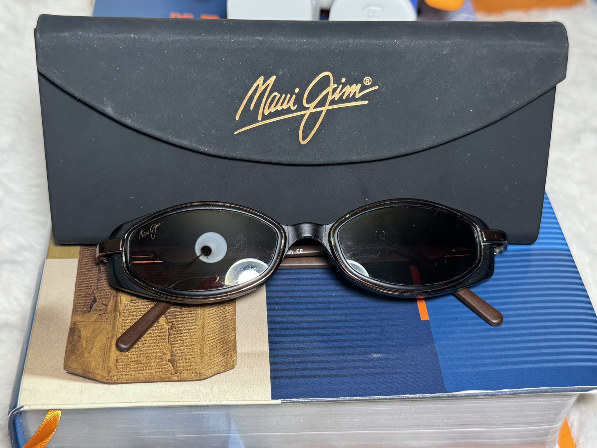 Beautiful smaller wrap Maui Jim designs, Hana is a petite oval wrap that hugs your eyes with a relaxed fit. The 6-base curvature doesn't compromise function for fashionable sporty look. Just spectacular design, with frame that reduces light and glare coming in from the side. The Hana look delivers a confident while elegant fashion statement, whether being worn for more formal occasions, outdoor activities or just relaxing by the pool. Super stylish look that works very well for most faces, especially those "with beautiful cheeks". Comes with authentic Maui Jim Case, New Maui Jim (as shown in pictures) Hana - Discontinued, Maui Jim Model Eye Size 45, Bridge 17, Temple 135 Lens Features: Maui Jim Sunglasses with PolarizedPlus technology eliminates glare and boosts colors with a patented multi-layer design. Lens Color: HCL Bronze lenses for bright sunlight and the highest available glare reduction with a warm tint. Shape & Design: Smaller Oval wrap refined