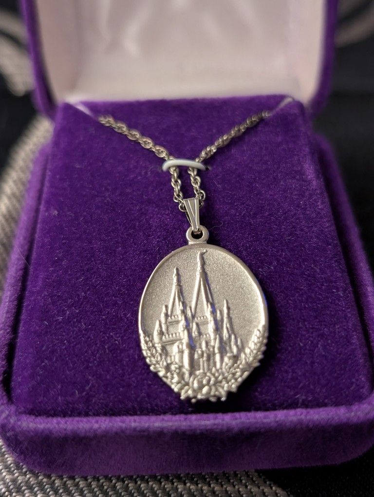 LDS Young Woman's Personal Progress SIlver Necklace and Medallion in jewelry box.