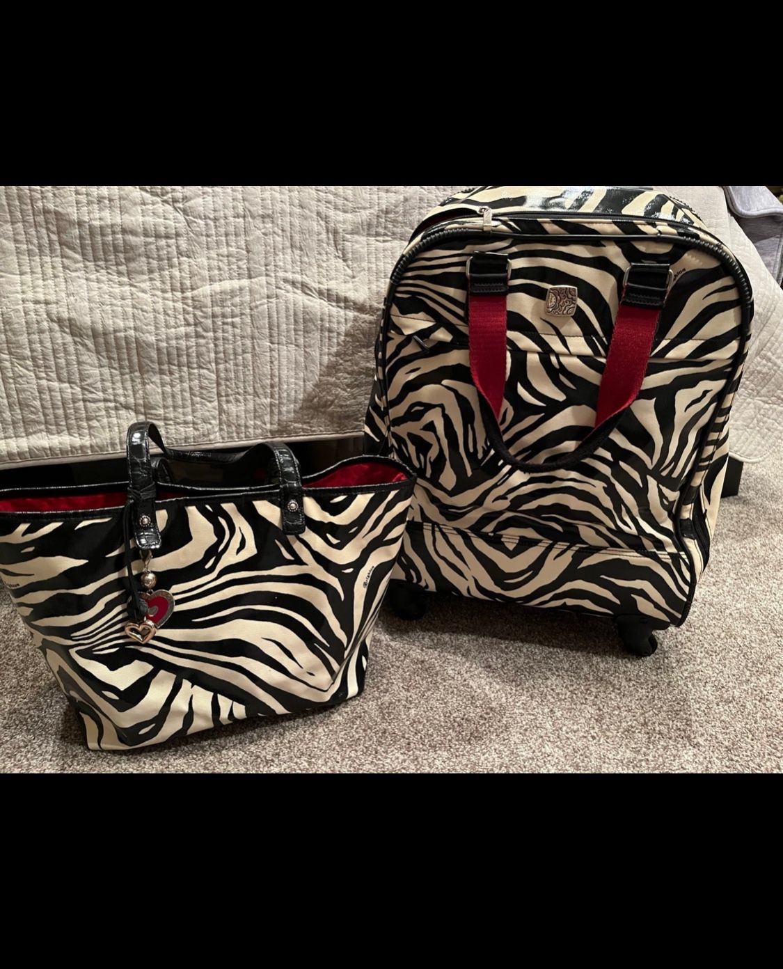 Gorgeous canvas coated carry on set. Carry on luggage and matching large bag with beautiful Brighton charms. Very nice condition inside and out. Bottom of bag has some stains but not visible when u carry. Minor scratches on the bottom. Ask questions. Firm price