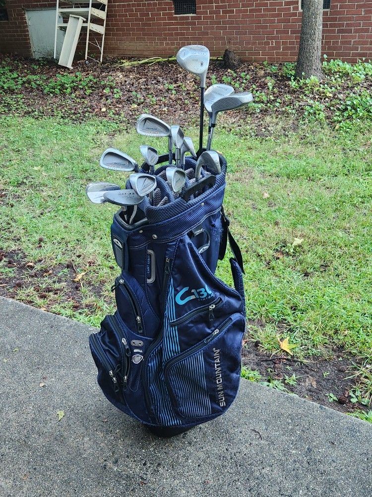 Men's right-handed golf clubs with a very very nice bag from Sun mountain. Priced for a quick sell.