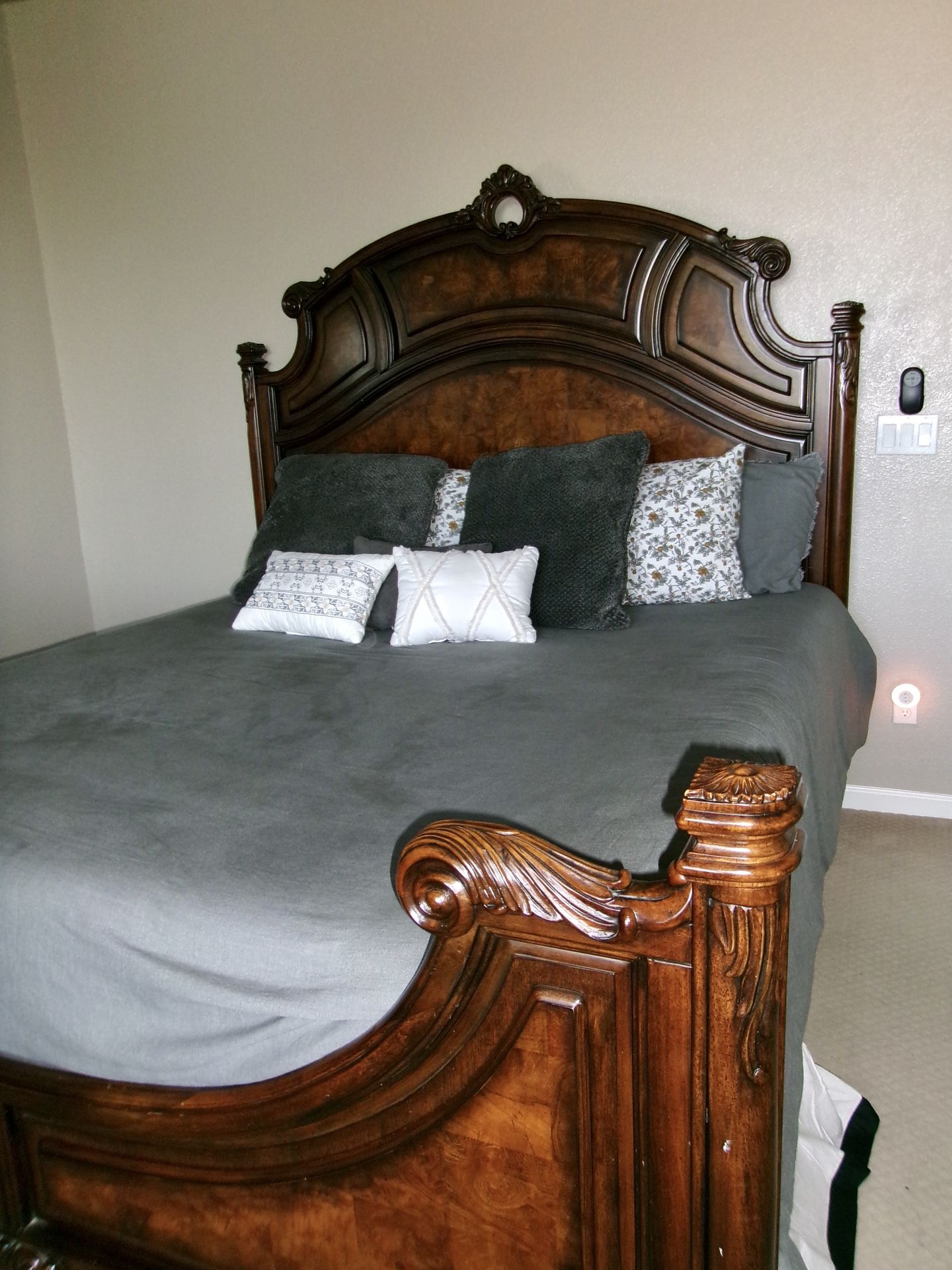 King Bed Set Includes frame, headboard, bed side table, and dresser. Gently used, good condition. Pickup only, Manteca.