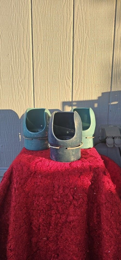 Porcelain heavy duty good condition latches up to cage The football will latch on to the wires in the back of the cage or you can just sit it on top of something it's heavy Easy to clean Less mess with the animal with the food bowl