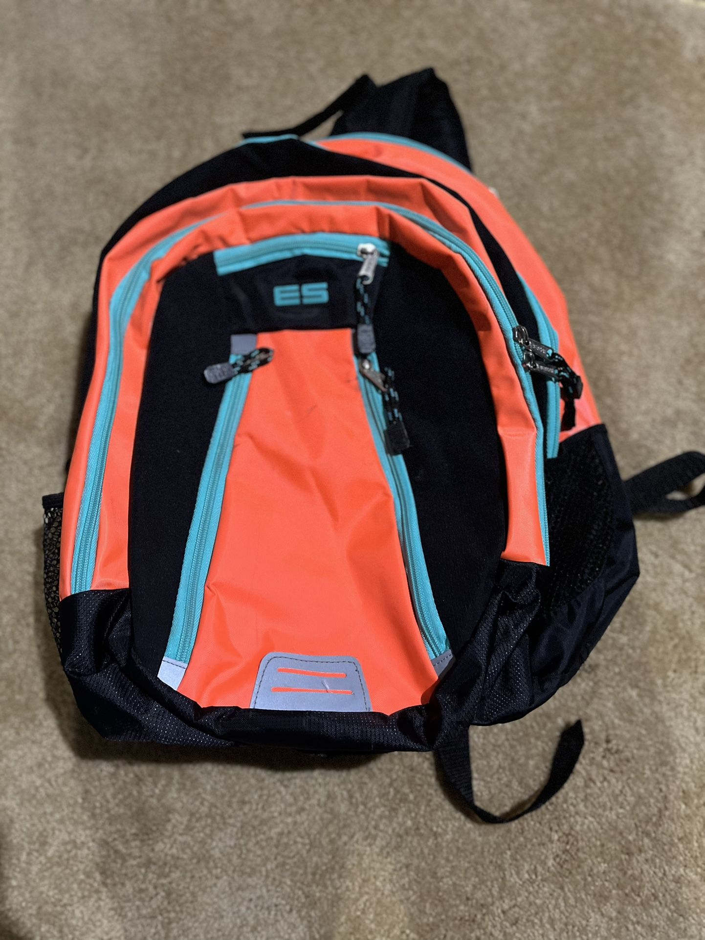Excellent ES Orange & Black Kids Backpack With Padded Laptop Sleeve & Zip Pockets