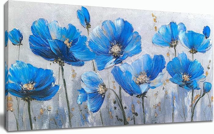 Blue Floral Canvas Wall Art for Bedroom Botanical Painting Wildflower Pictures Large Artwork for Living Room Office Home Wall Decor 20x40 Inch