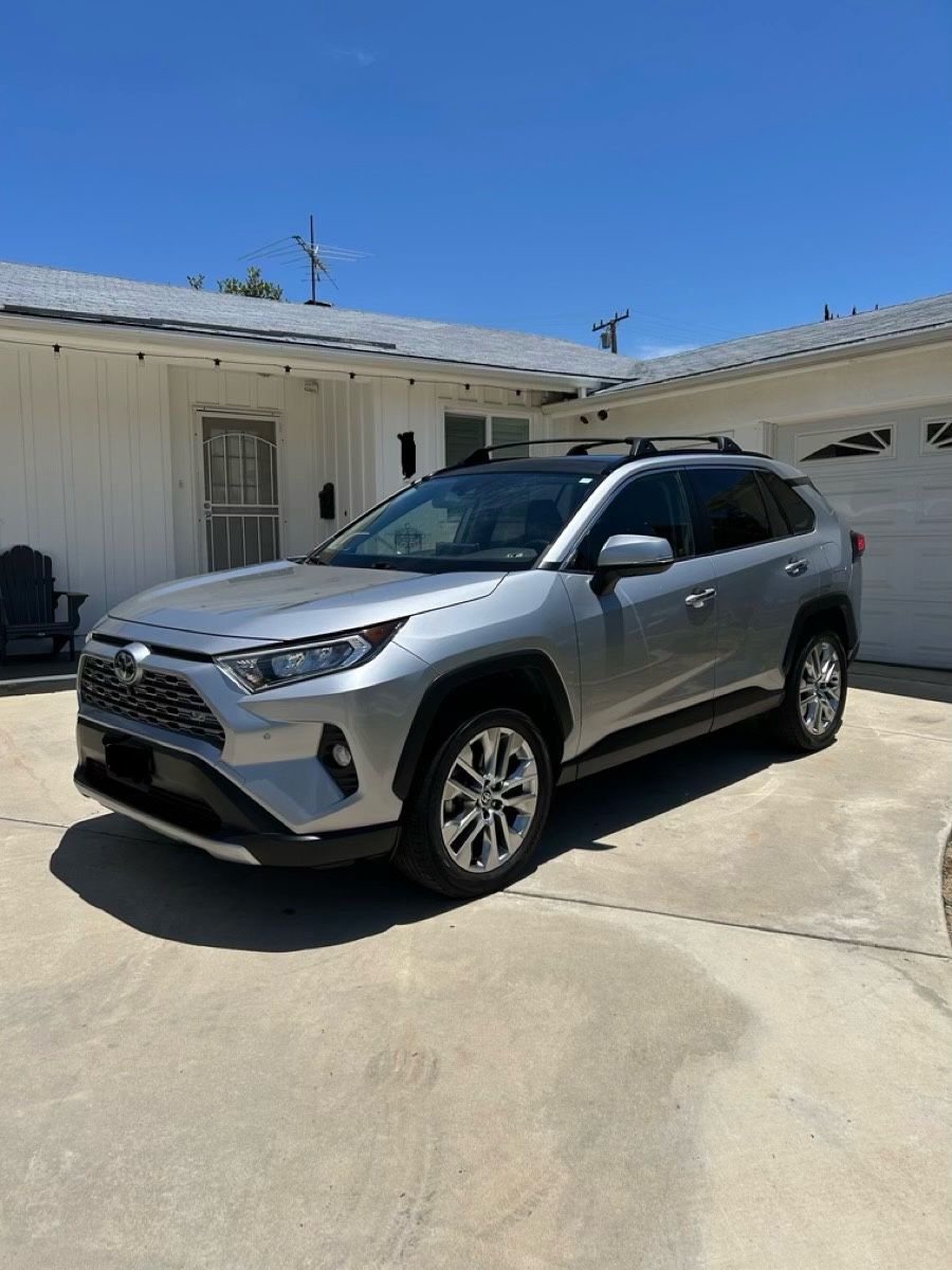 TOYOTA ONE OWNER MILES 35,769 RAV4 LIMITED FWD SU 2020 SILVER SKY METALLIC ,& PERFORMANCE Wheel Drive (FWD) SAFETY & CONVENIENCE - Toyota Safety Sense 2.0:- 2.5L 4-Cylinder Engine 203 hp @ 6600 pm / 184 Ib-ft @ 5000 pm - 8-Speed Automatic Transmission - Front Wheel Drive (FWD) Safety Sense 2.0: Pre-Collision Sys w/ Pedestrian Detection, Full-Speed Range Dynamic Radar Cruise Control, Lane Departure Alert w/ Steering Assist, Lane Tracing Assist, Automatic High Beams, Road Sign Assist - STAR Safety System: VSC, TRAC, ABS, Elect Brake-Force Distribution, Brake Assist & Smart Stop Technology - Backup Camera w/ Dynamic Gridlines - 8 Airbags - LATCH-Lower Anchor & Tether for CHildren - Blind Spot Monitor w/ Rear Cross-Traffic Alert - Front & Rear Parking Assist w/ Automated Braking. EXTERIOR - LED Headlights & Daytime Running Lights - Power Tilt/Slide Moonroof - 19-in. Super Chrome Finish Alloy Wheels - Power Liftgate INTERIOR - Premium Audio - 8" Touch-Screen, Dynamic Navigation, 11 JBL Speakers including Subwoofer, & Amplifier, HandsFree Bluetooth Phone/Music, USB Media Port, 4 USB Charge-Ports, SiriusXM w/ 3-Month All Access Trial, Android Auto & Apple CarPlay Compatible - Dual Zone Auto A/C w/ Rear Vents - SofTex Seats w/ Heated Front Seats, Power Driver's Seat w/ Memory Function - Smart Key System w/ Push Button Start - Digital Rearview Mirror w Grade Weather Package-Includes Heated Leather-Trimmed Steering, Wheel, Perforated Heated & Ventilated Front Bucket Seats, Rear Outboard Passenger Heated Seats, & Rain-Sensing Variable Intermittent Windshield Wipers wi De-Icer Function AT Limited Grade Advanced Technology, Includes Smart Key System on All Doors & Liftgate, Hands-Free Foot-Activated Power Liftgate w/ Jam Protection, Qi-Compatible Wireless Smartphone Charging, & Bird's Eye View Camera w/ Perimeter Scan, Overhead 360 Degree View in Low Speed Drive & Reverse, & Curb View SR 2T. 3T. Panoramic Glass Roof w/ Front Power Tilt/Slide Moonroof All Weather Floor Liners and Cargo Liner
