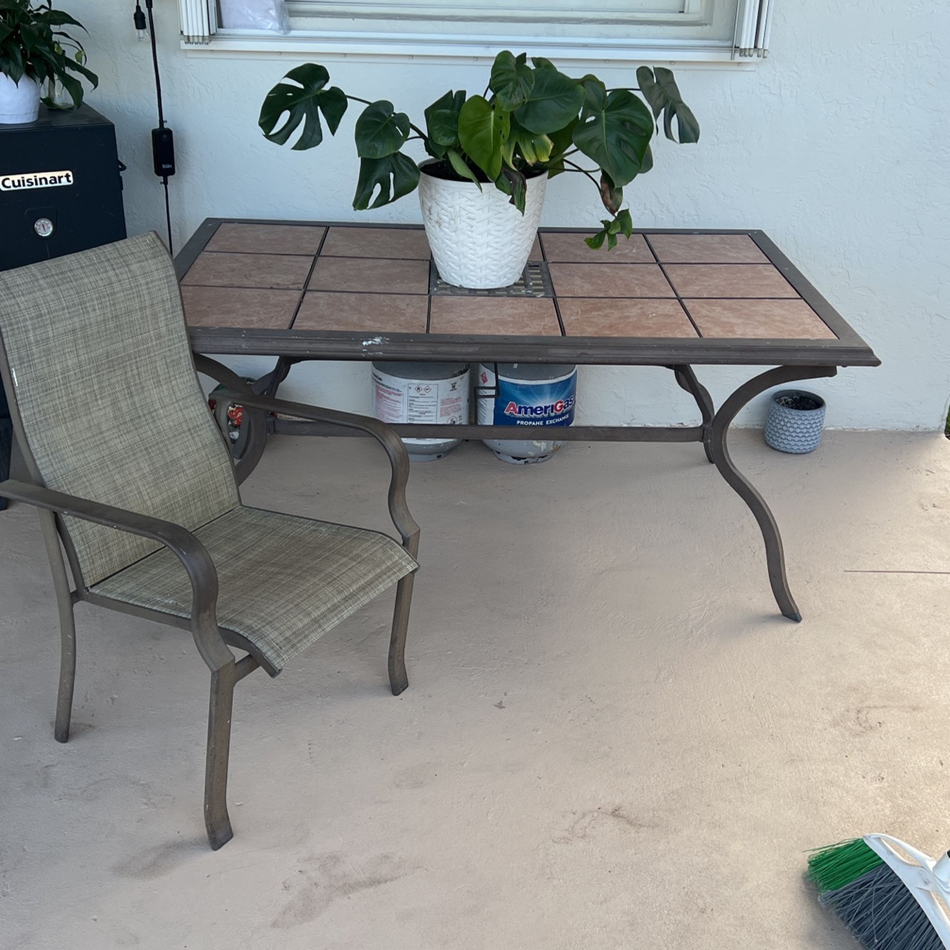 Hampton Bay patio table $70. The 5 chairs are free as they need repair. 1 chair is in good condition $20.