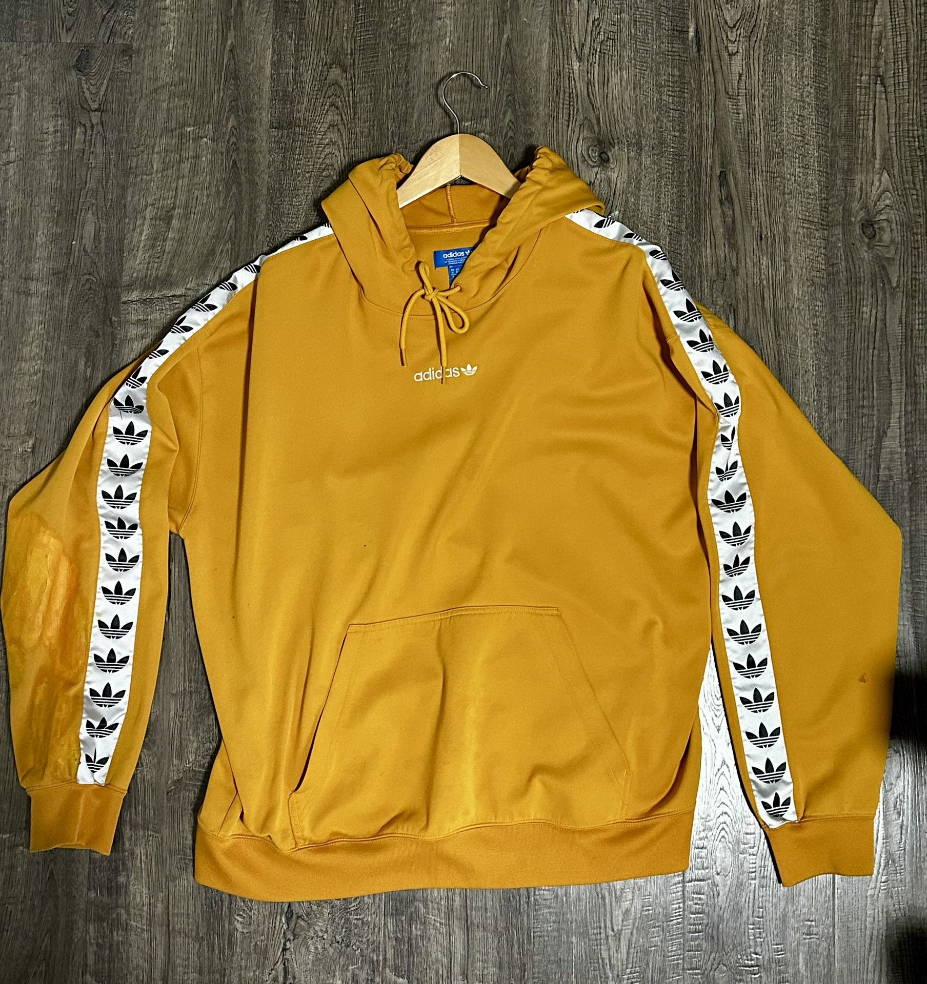 Limited edition Condition: Used/Minor paint damage Adidas Yellow- Mustard Hoodie Side striped logo Oversized fit Unisex