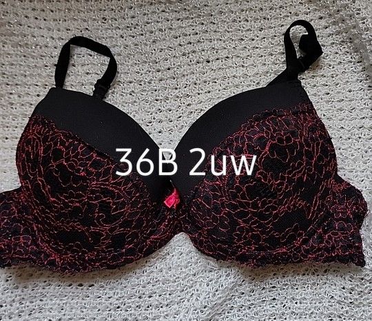 Women's Sexy Black + Red Underwire Bra 36b And 2 Hooks