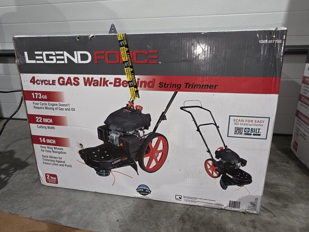 Brand new in the box. Walk behind trimmer. 4 cycle 173cc so no oil mixing. 2 year warranty. Large 14 inch wheels. With a 22 inch cutting width. Includes 0.155 trimmer line.