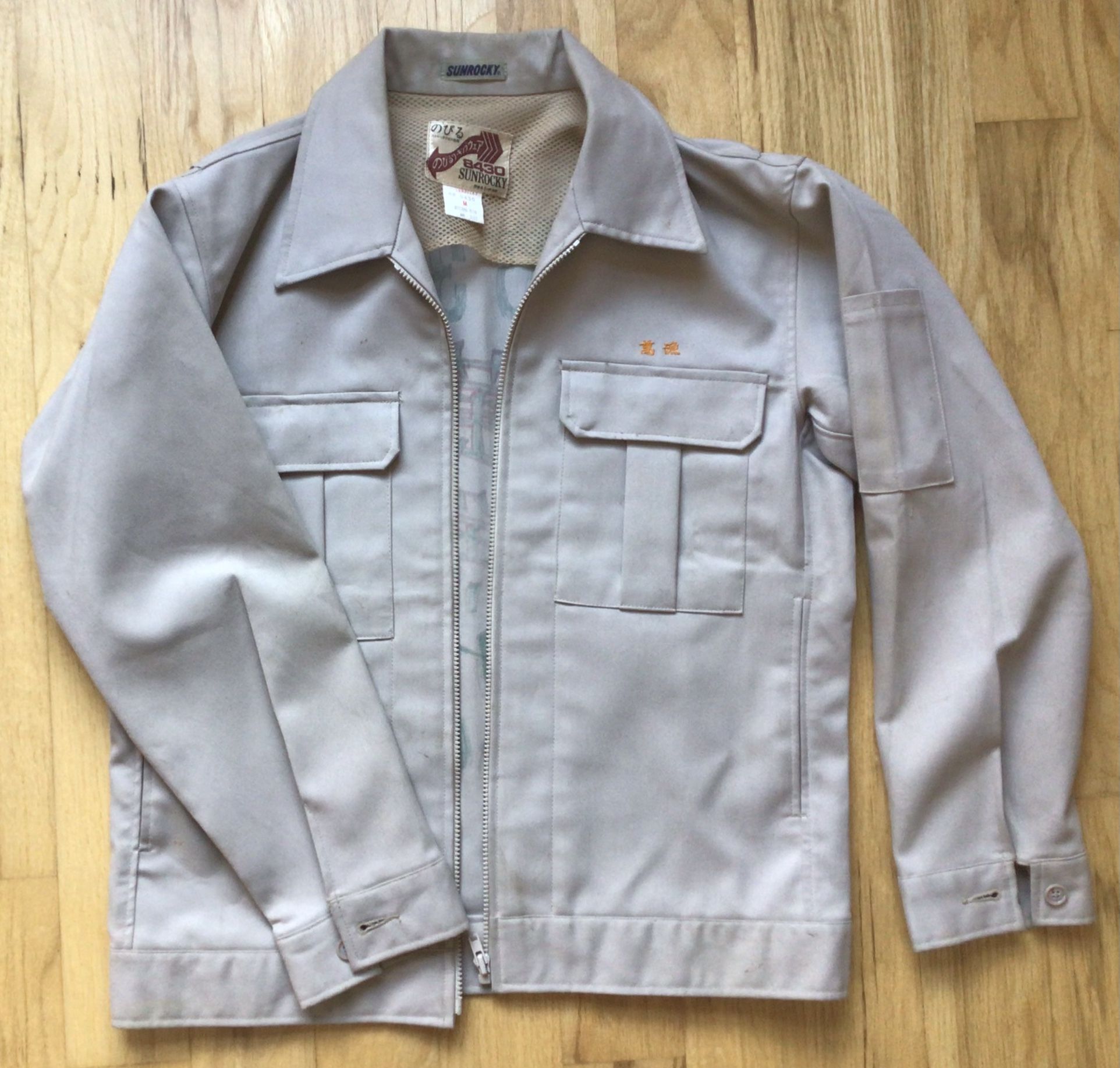 It has the company name embroidered on the front and the name of the vessel, with its number on the back, hand colored. I am 5’10”, 160 lbs. too small for me. I think it would fit someone about 5’7”, 140 lbs or so. It’s pretty cool.