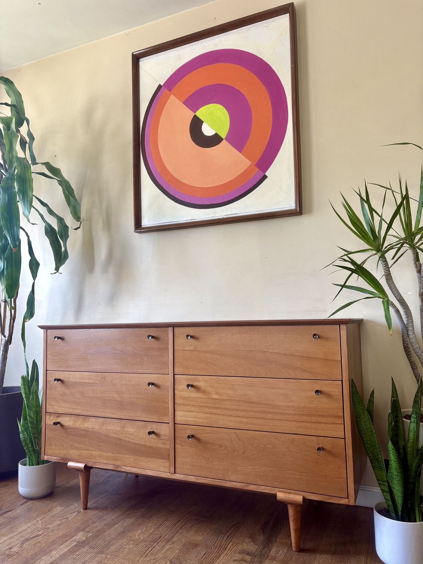 What a find! MCM and Stylish, this Stunning 6 Drawer Dresser from the Furniture Guild of California, is an ideal option for the living room or bedroom! Features 6 drawers for ample storage space, made of a beautiful solid wood grain, and she has been professionally refinished! Dimensions 54L X 20W x 31H #dresser #instagood #sale #instasale #homeliving #mcm #dreamy #dreamlifestyles #upscale #refine #luxury