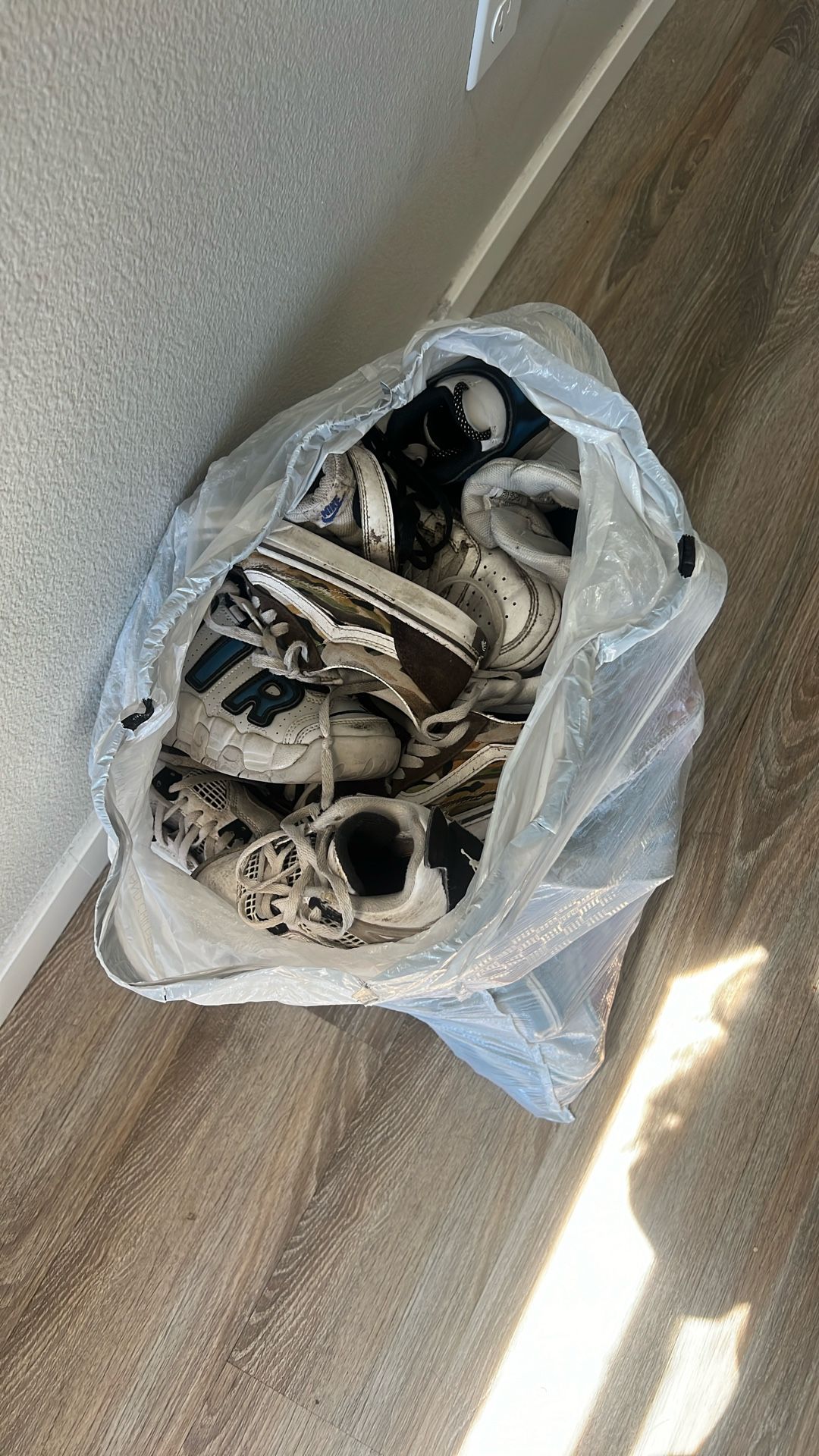 Full bag of boys shoes, all of them are used and do need a good cleaning. Nikes vans and Jordan’s. Sizes probably 12-2 kids size $60 for the whole bag OBO