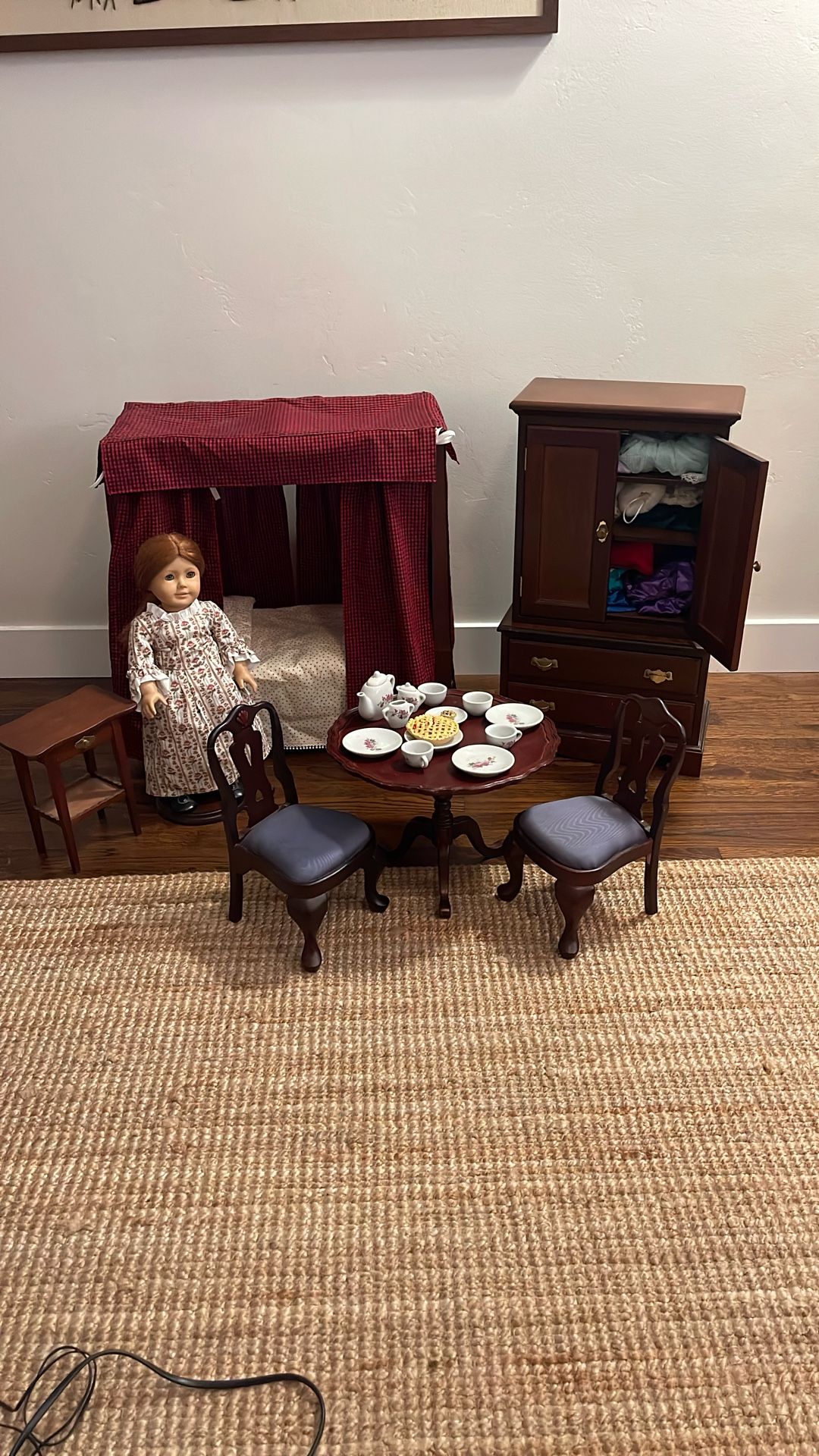 ✨ Vintage Felicity American Girl Doll Set – Complete Bundle! ✨ Selling a beautiful Felicity American Girl Doll with a full collection of vintage furniture and accessories. These were played with and loved, so there is some expected wear and a few repairs — but everything is still in good usable condition. There’s plenty of joy left in this set, whether for a child who wants to play or a collector who appreciates vintage charm. Included in the set: • Felicity doll • Bed with handmade bedding • Table + chairs + tea set • Dresser filled with clothes and accessories • Additional vintage items from the original collection All items sold together as a complete set. Great value for anyone looking for a full American Girl vintage collection without having to hunt down each piece.