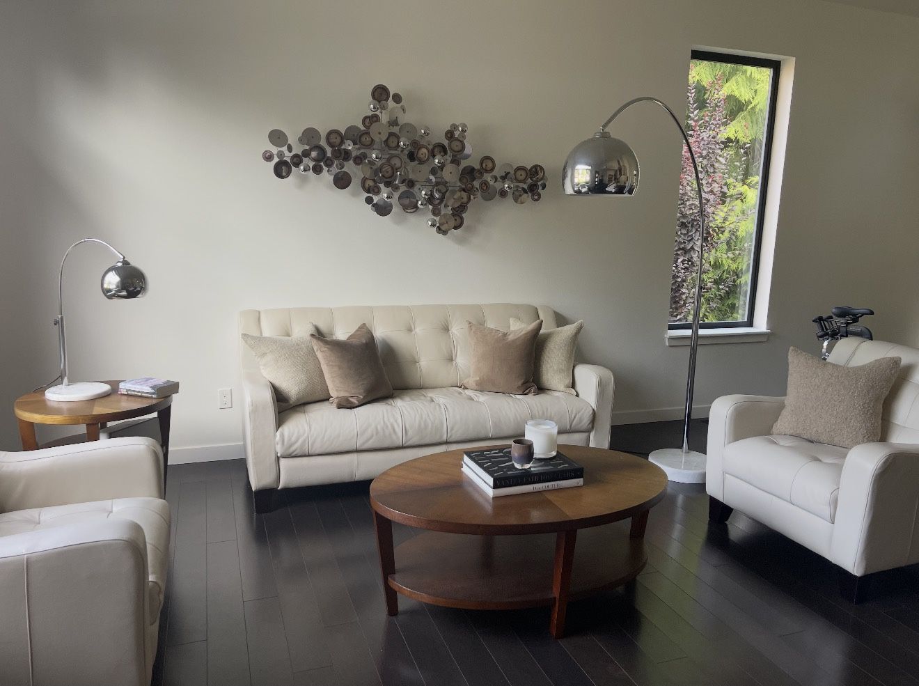 Dania Sofa and two chairs Crate and Barrel coffee table Crate and Barrel end table $1500 for all 5 pieces OBO Sofa and chairs in mint condition Tables in excellent condition with slight sun fading on top