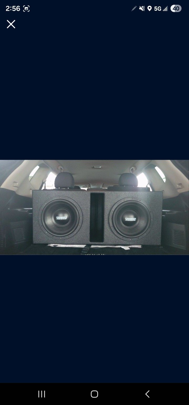 This product is basically new. Only used for a couple weeks. Each subwoofer is 1250 Watts RMS for a total of 2500 watts RMS. The bass can be heard from blocks away. You will feel it rumble in your chest & shake your whole vehicle. The subwoofer box has this durable Rhino Liner Coat on it. & the box's face is Double Baffled & has some braces inside to help fortify & make it last forever. This is a deal. The box cost $650 to make. & the subs were $851.61 after taxes & shipping. I got the best terminals for the speakers, copper bolts which is way better than these trash terminals for pre-fab subs boxes. Copper is one of the best metals next to silver that can be used for the best sound. & the speaker wire inside is expensive very low Guage thick pure oxygen free copper wire. This dual box with subs should cost about $1550, but im giving this deal because I need to get rid of some stuff in order to pay some medical bills. I can deliver this but its best to meet in a well lit place like a quick trip with lights, cameras , security around for our safety. I can help you get it in your vehicle & i can help you get everything connected. And I can give you a sound test if you want so you can hear how great it sounds. External Box dimensions are - 37.75" Length 22" Depth 16" Height Can add amp for $300. Total value is way more than what im selling it for.