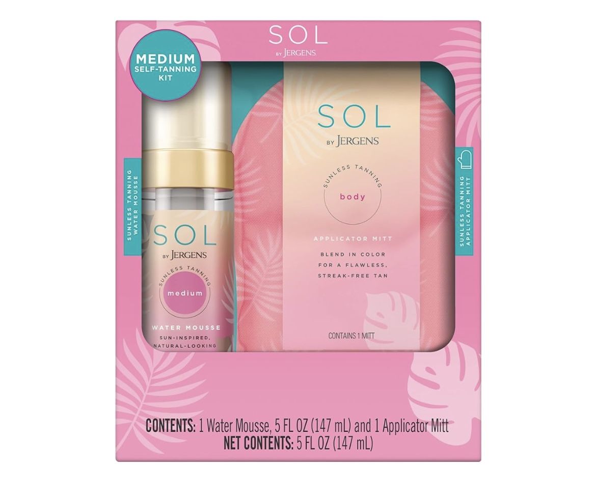 Sunless Kit *NEW IN BOX* Jergens SOL Self Tanner Water Mousse Kit I in Medium Dye-free Sunless Tanning Foam and Tanning Mitt, Cruelty Free, Vegan Friendly Self Tanning Mousse, 5 Oz + 1 Mitt