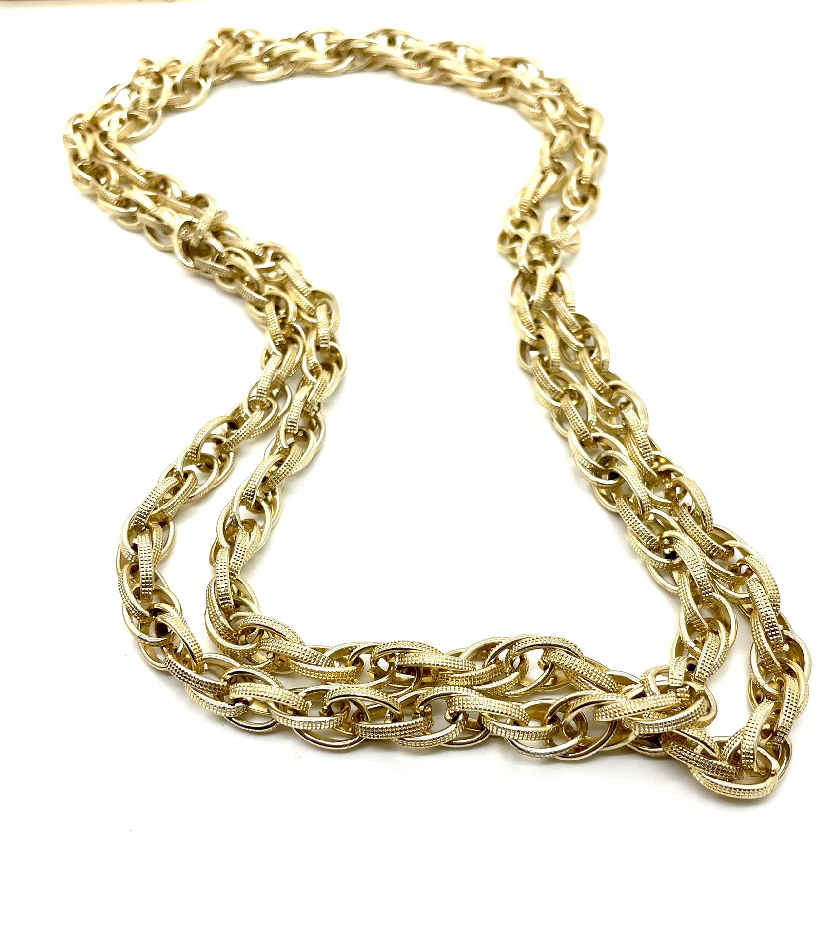 This is a long 60- inch wide chain necklace. If you like your chains thick and shiny, this is for you! It’s 10mm wide.