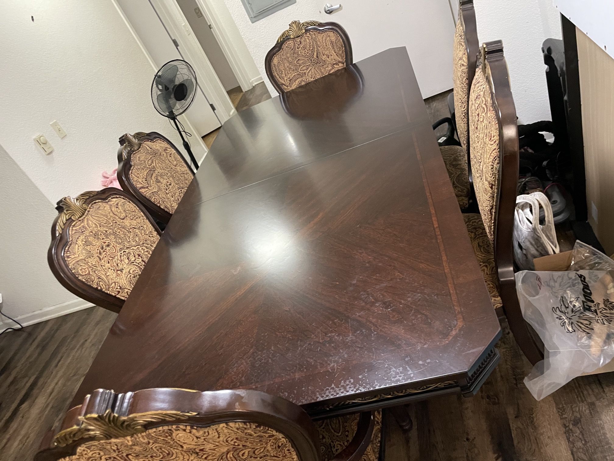 Comes with 6 chairs as seen in pictures Not sure of the dimensions but its big