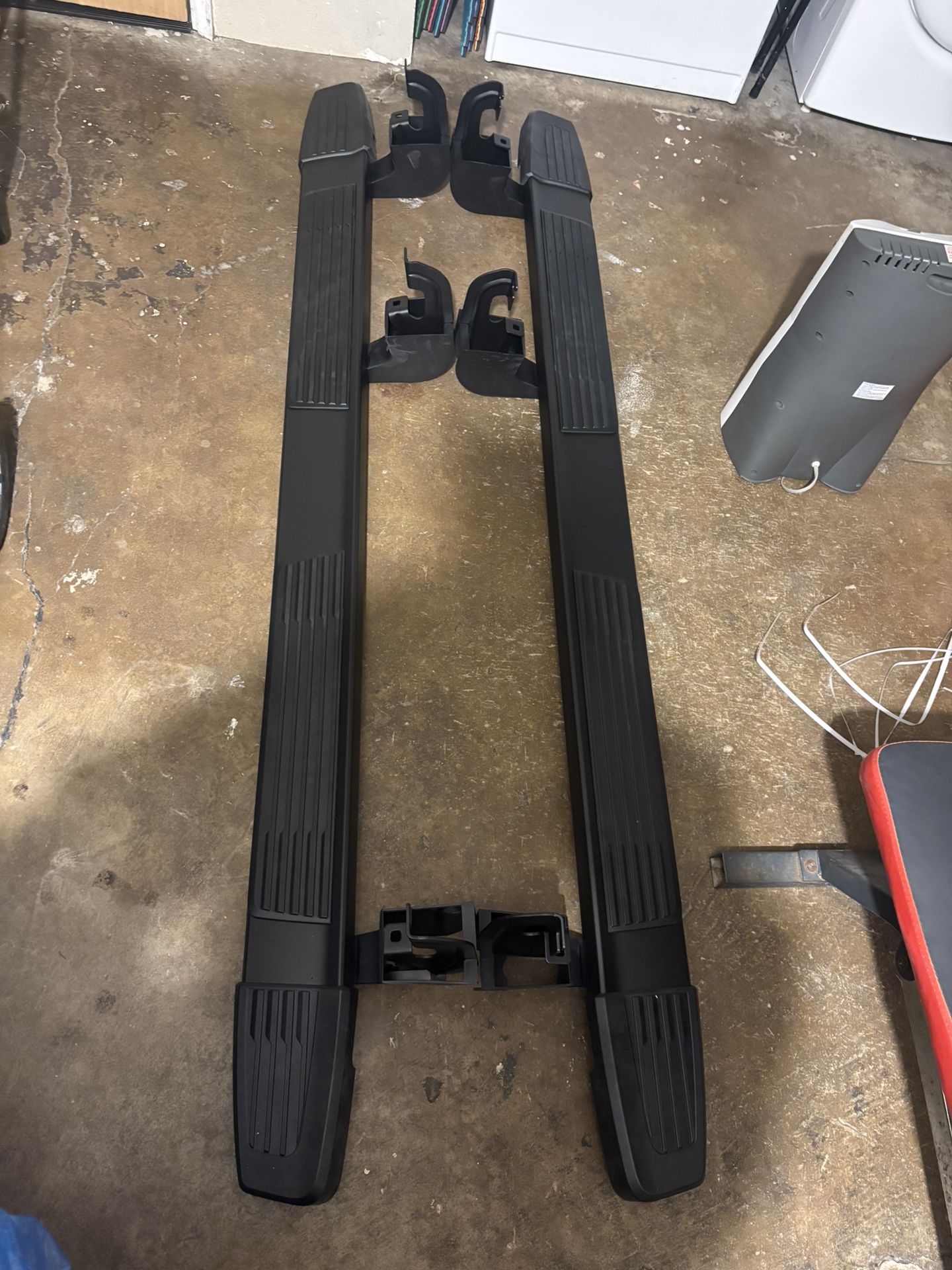 2019-2025 Chevy Silverado running boards new in box will fit a 1500 & 2500 comes with hardware as shown in picture have multiple sets 2019-2025 Chevy Silverado estribos Nuevos en caja le quedan a una 1500 y 2500 viene con tornillos tengo multiple sets