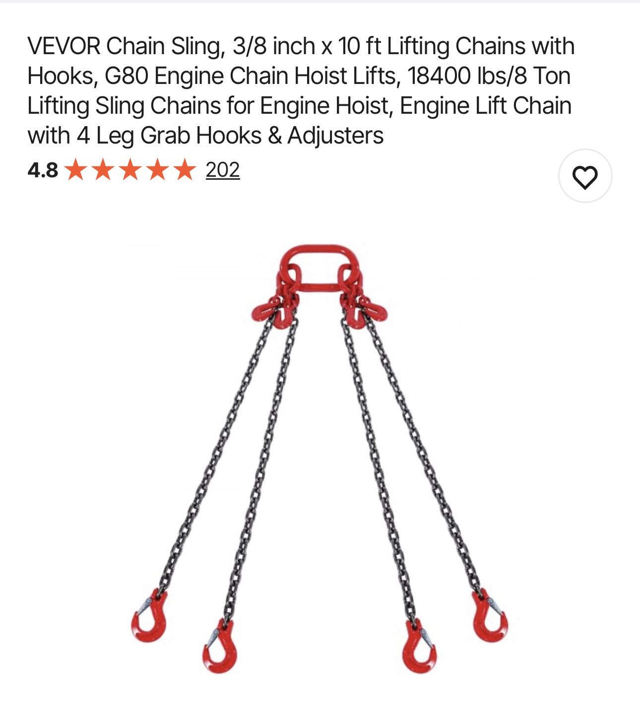 VEVOR Chain Sling, 3/8 inch x 10 ft Lifting Chains with Hooks, G80 Engine Chain Hoist Lifts, 18400 lbs/8 Ton Lifting Sling Chains for Engine Hoist, Engine Lift Chain with 4 Leg Grab Hooks & Adjusters