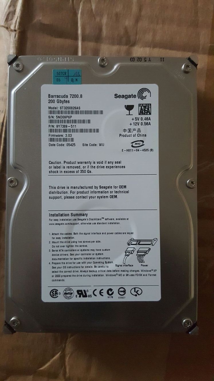 200gb Seagate barracuda hard drive 3.5 7200.8