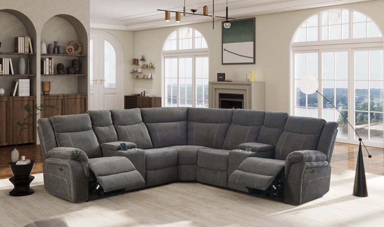 Gray microfiber fully reclining sectional couch