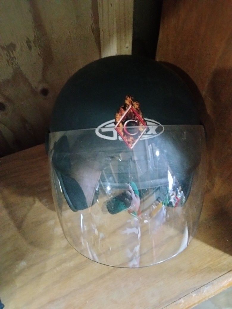 I have two black motorcycle helmets one a medium size one a large couple of scratches but in really good condition asking 20 for each or 30 for both