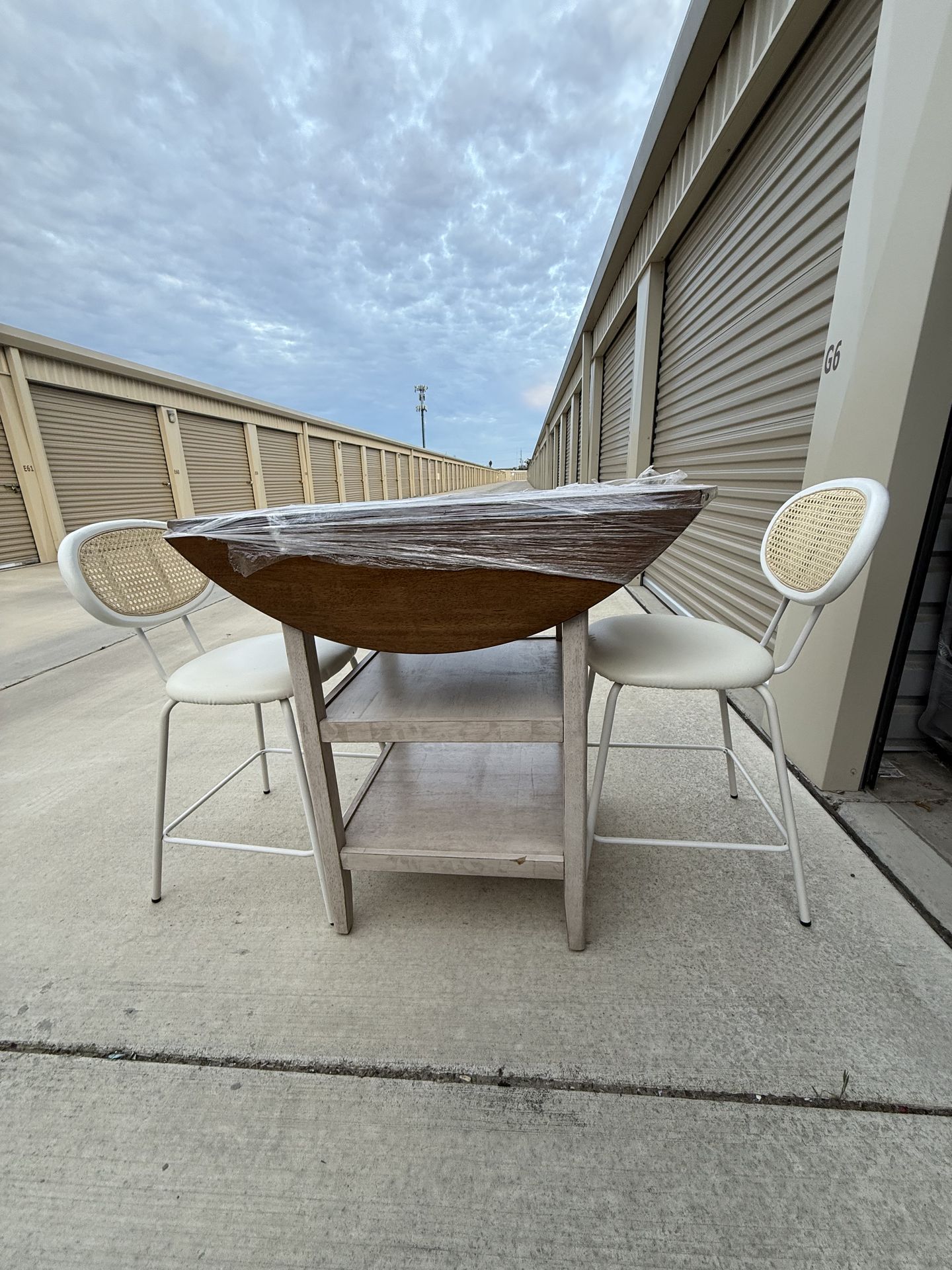 Weston Home Alita Oak Top Round 2-Drop Leaf Counter Has some scuffing in one of the leaves from moving McDuffie Bar Stools from Beachcrest Was purchased separate from table but work great together