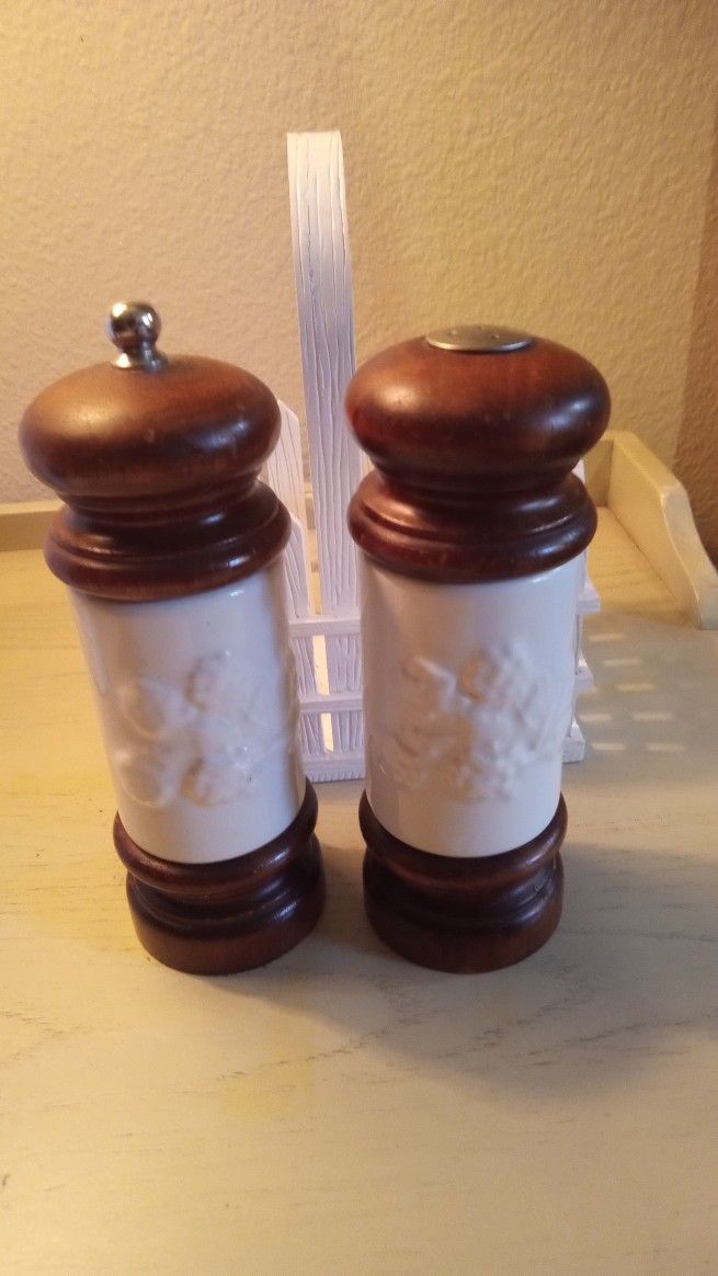 Salt N Pepper Shakers With Caddy